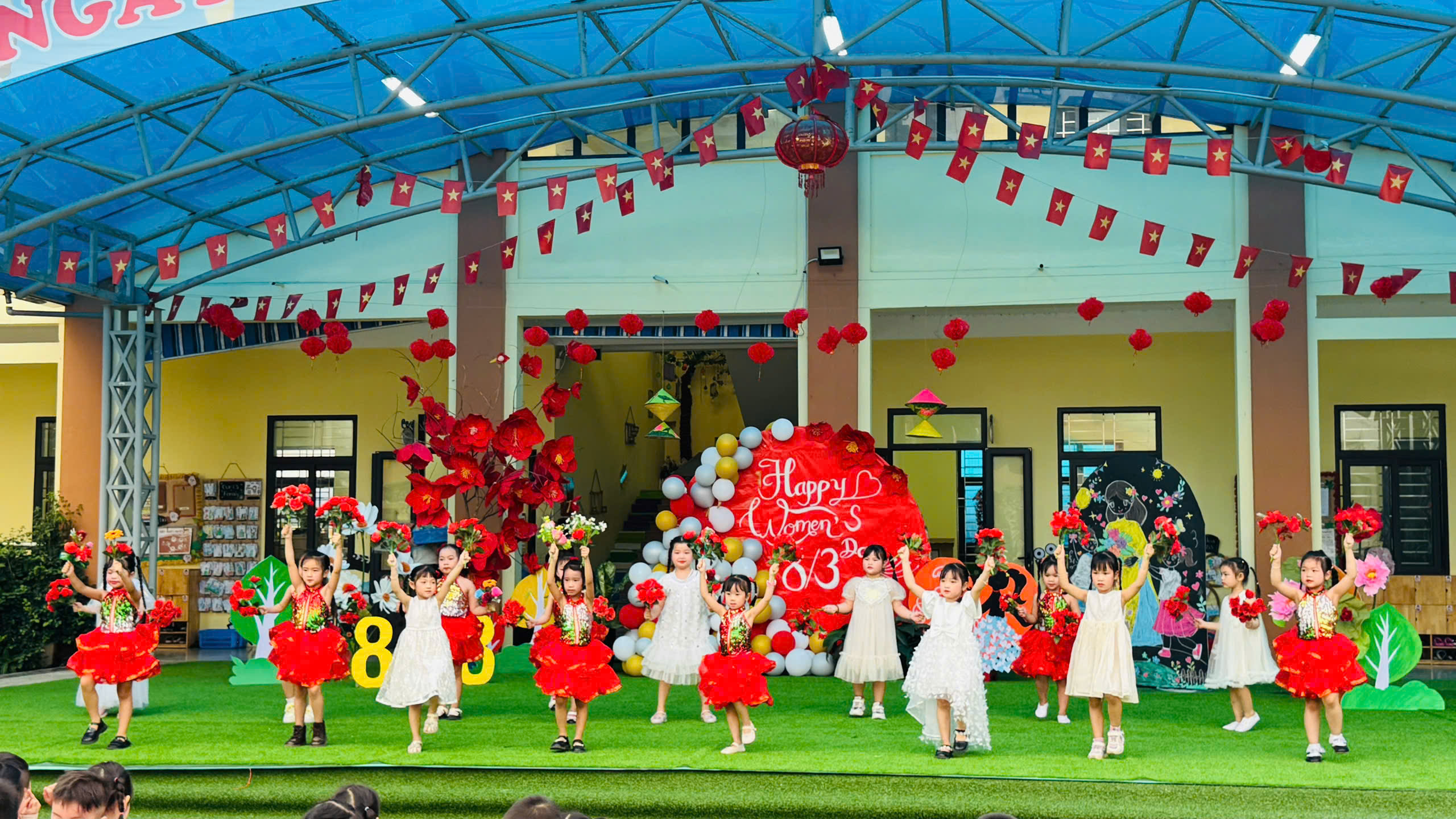Với những tiết mục múa, hát hồn nhiên, đáng yêu ca ngợi bà, mẹ và cô giáo, các bé đã mang đến không khí vui tươi và nhiều cảm xúc. Đây là hoạt động ý nghĩa giúp trẻ mạnh dạn, tự tin và biết bày tỏ tình cảm yêu thương tới những người phụ nữ thân yêu.