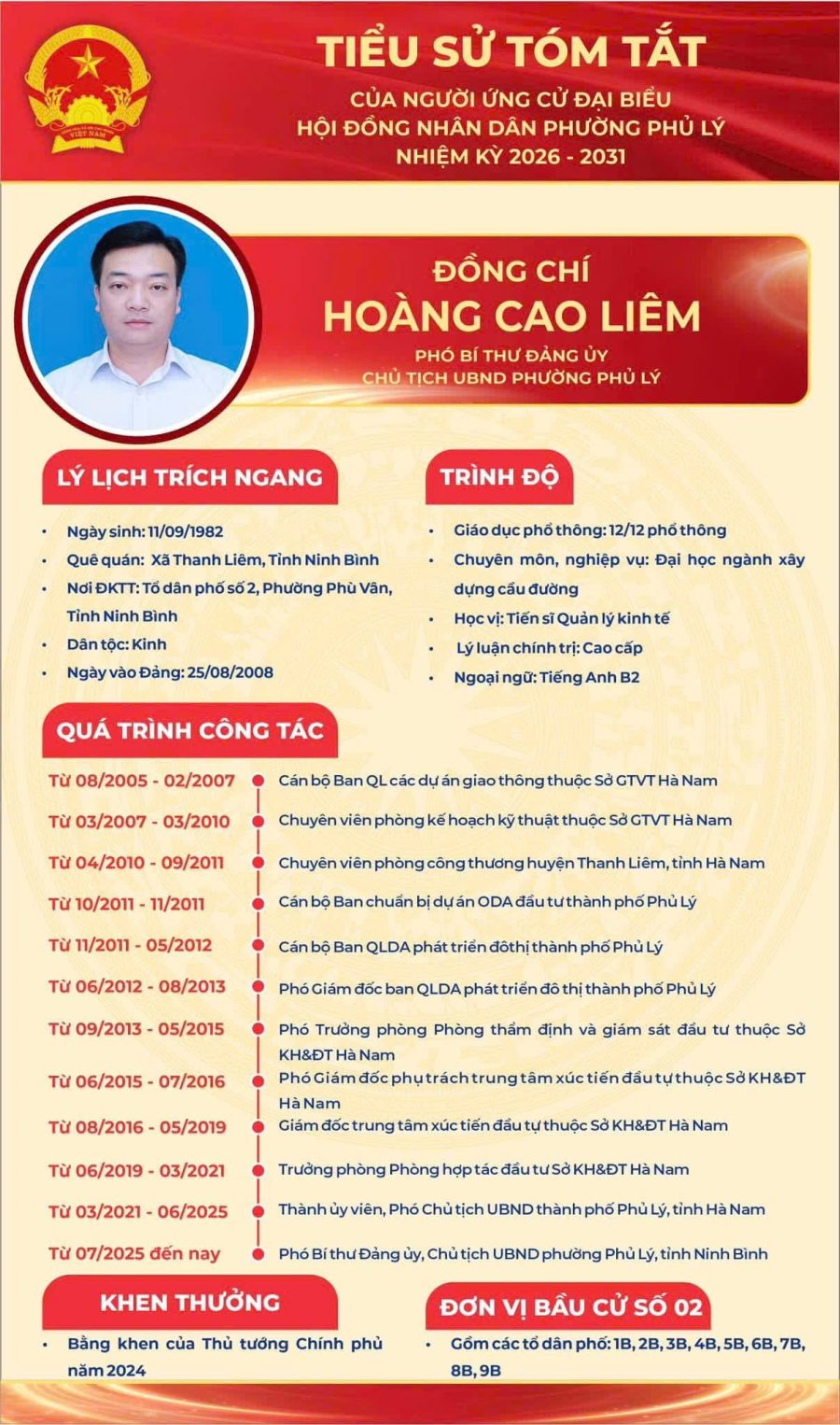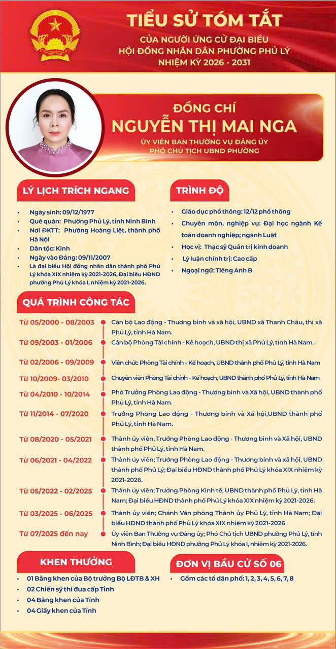 GIỚI THIỆU NGƯỜI ỨNG CỬ ĐẠI BIỂU HĐND PHƯỜNG PHỦ LÝ NHIỆM KỲ 2026-2031
